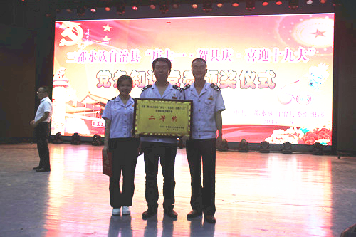 三都县局积极参加了县委组织开展了“庆七一 贺县庆 喜迎十九大”党务知识竞赛,三都国税局代表队经过不懈努力,夺得二等奖。充分展现了三都国税人积极奋进,顽强拼搏的良好形象。
