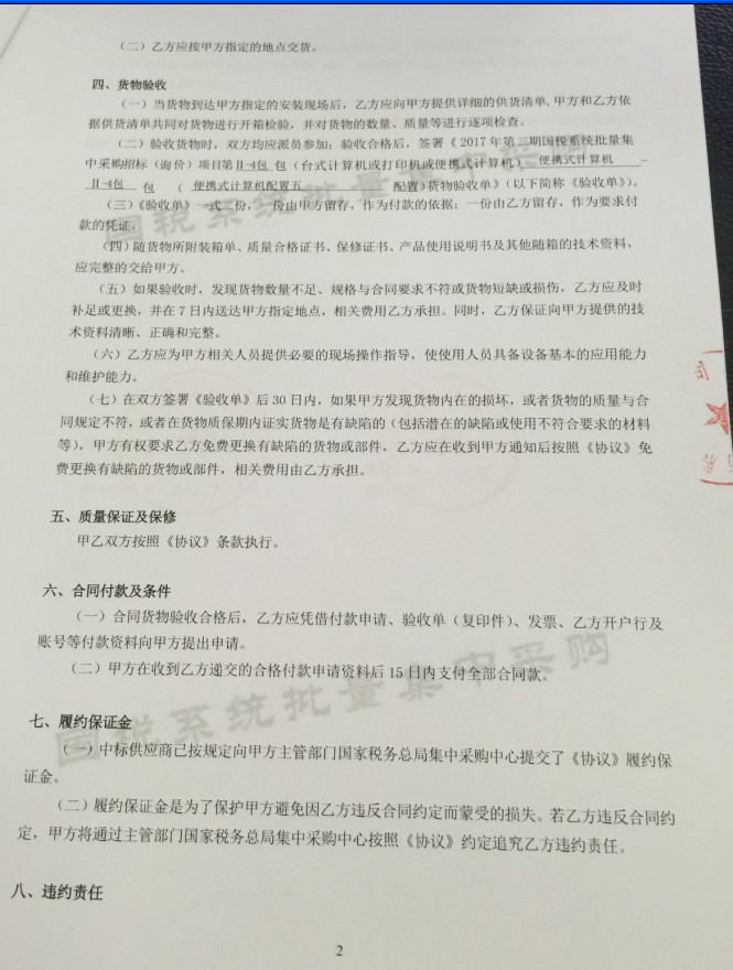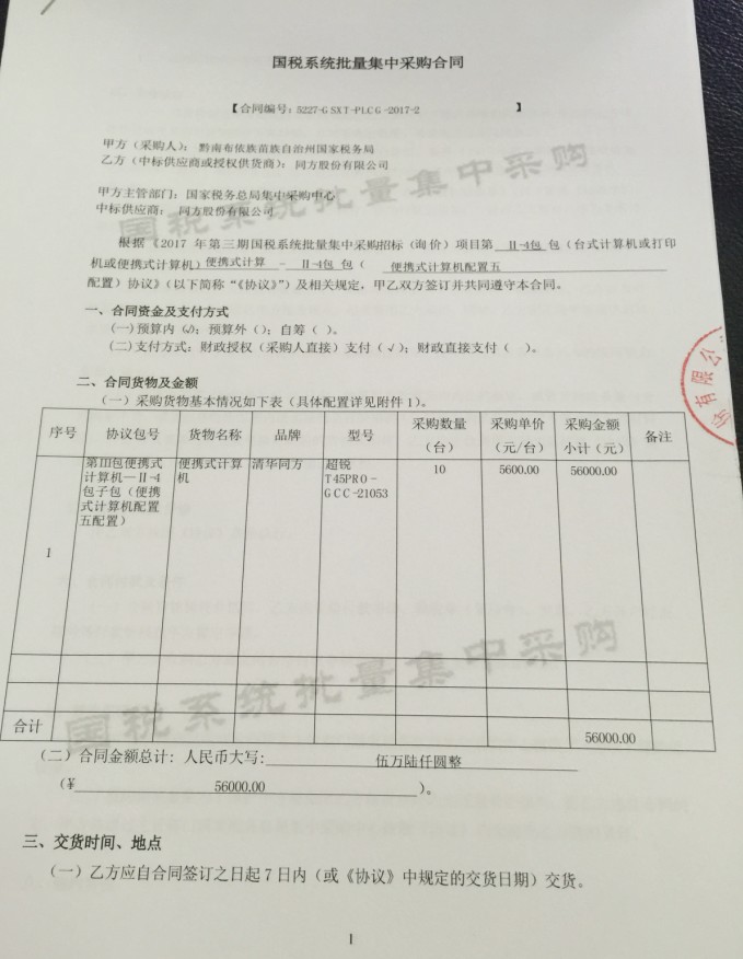 国税系统批量集中采购合同(便携式计算机)